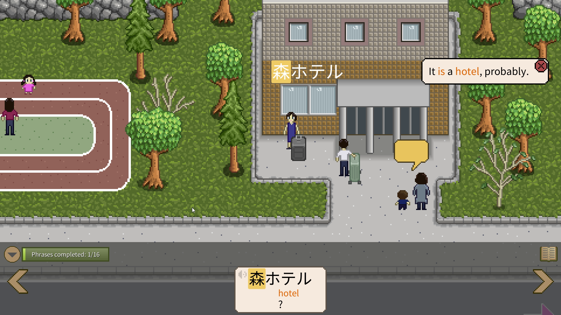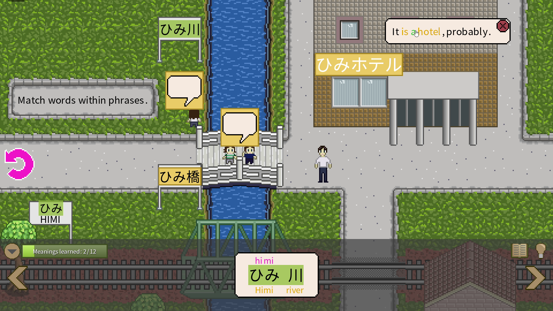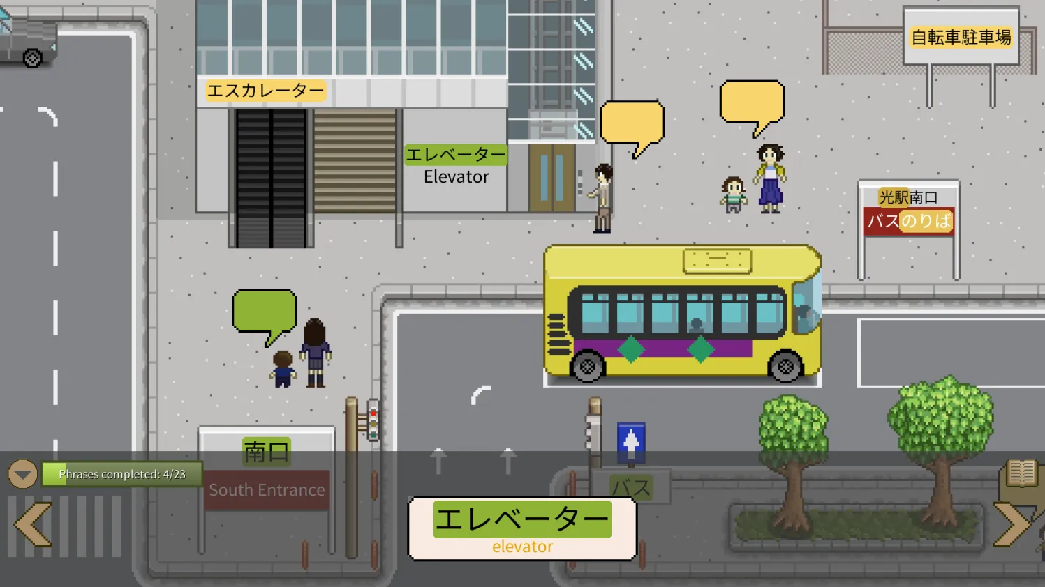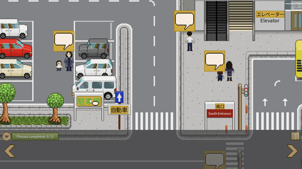 So to Speak drops players into a 2D simulation of Japan where they must decipher the meaning of Japanese words through context clues and visual connections. Players drag Japanese text onto corresponding objects or English descriptions, learning naturally through discovery rather than memorization. Unlike conventional language apps that rely on flashcards, the game presents practical vocabulary that travelers would actually encounter: entrance and exit signs, bathroom markers, and everyday conversation snippets.