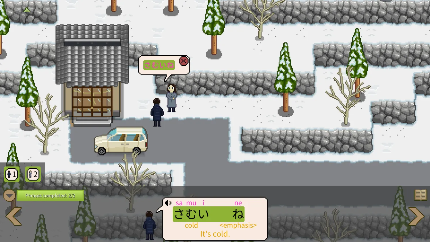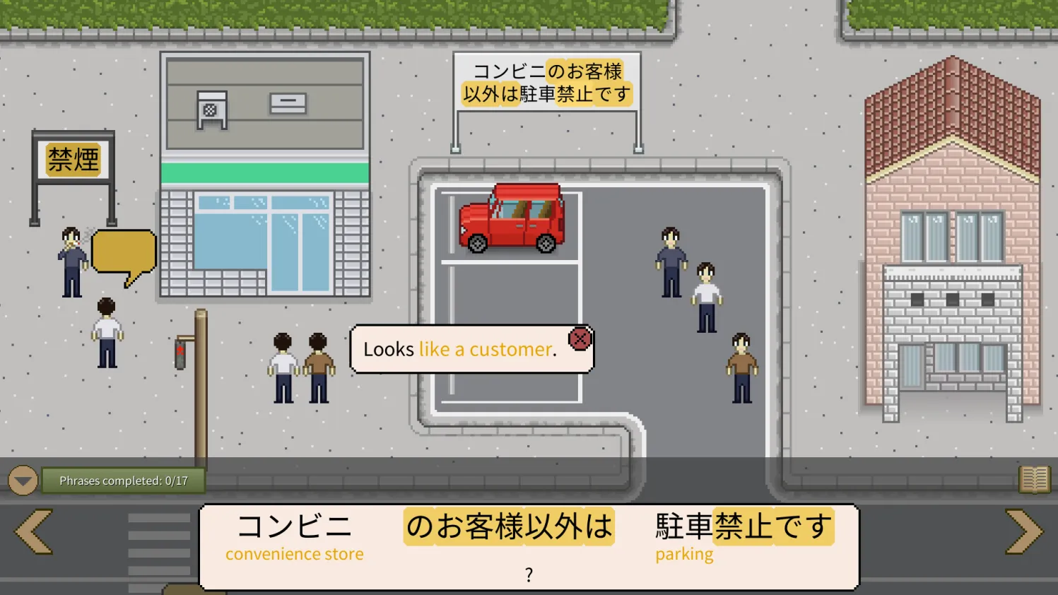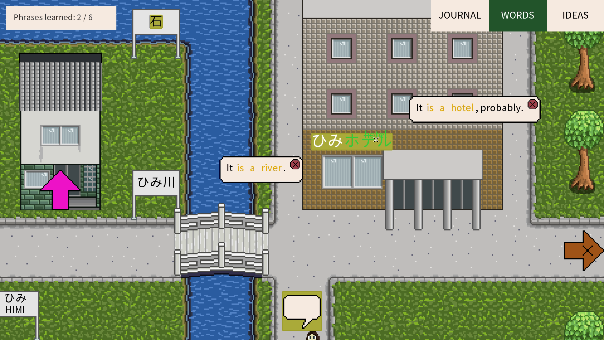 So to Speak drops players into a 2D simulation of Japan where they must decipher the meaning of Japanese words through context clues and visual connections. Players drag Japanese text onto corresponding objects or English descriptions, learning naturally through discovery rather than memorization. Unlike conventional language apps that rely on flashcards, the game presents practical vocabulary that travelers would actually encounter: entrance and exit signs, bathroom markers, and everyday conversation snippets.