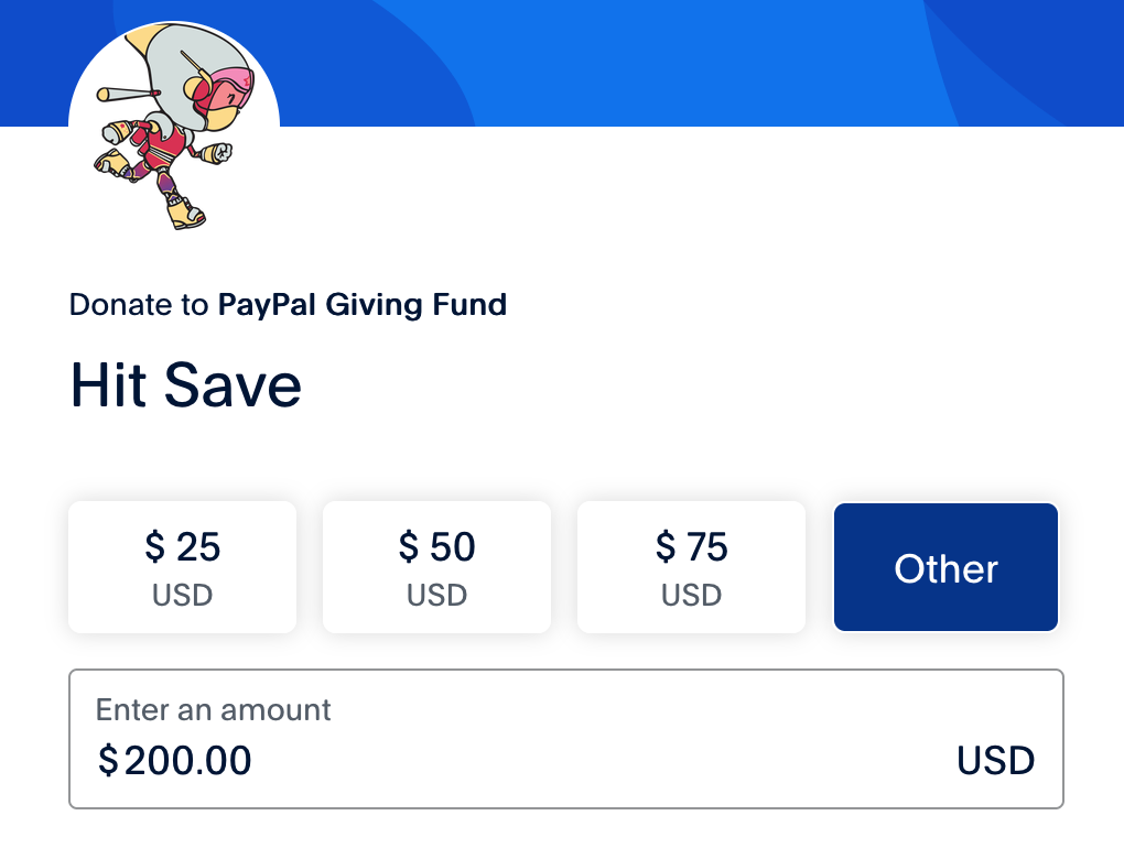 If you want to send us larger one-time donations we recommend using PayPal Giving Fund, where PayPal will cover all fees.