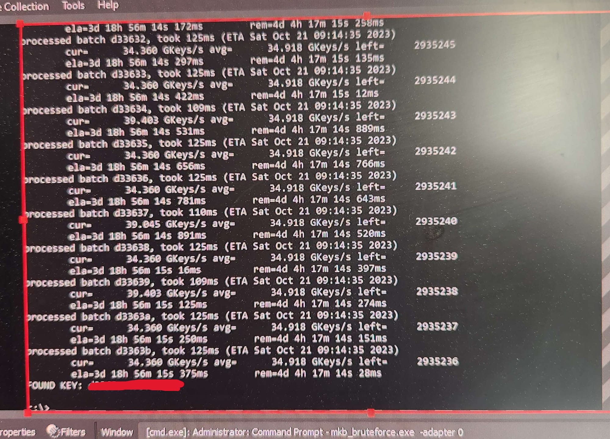Left: The bruteforcing tool running on GoodTofuFriday's GPU. Right: the device key is found! (image credit to GoodTofuFriday)