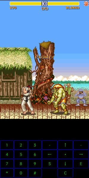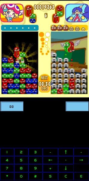 Puyo Puyo Fever DX, Tetris Blue, and Street Fighter 2 running in Melange. The left two games were dumped from Japanese AU phones.