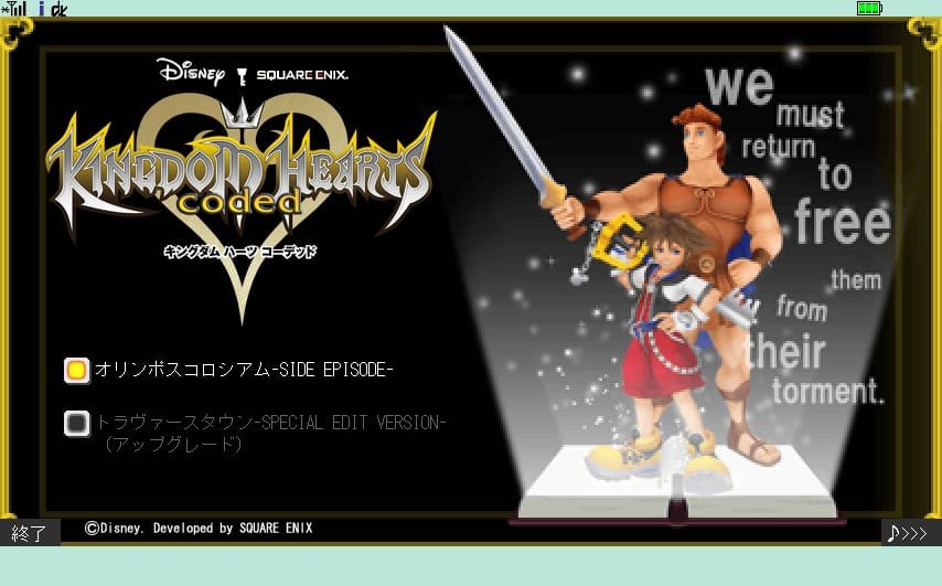 In addition, the demos for Dirge of Cerberus Lost Episode - Final Fantasy VII and Final Fantasy IV The After Years were preserved from a P903i. The Lost Episode demo was preloaded, while The After Years demo was a commercial game. On December 25th, the Kingdom Hearts Coded demo was preserved from a P-01A. With ktdumper's compatibility list expanding to include most Panasonic DoCoMo phones, more i-mode games will be preserved than ever before.